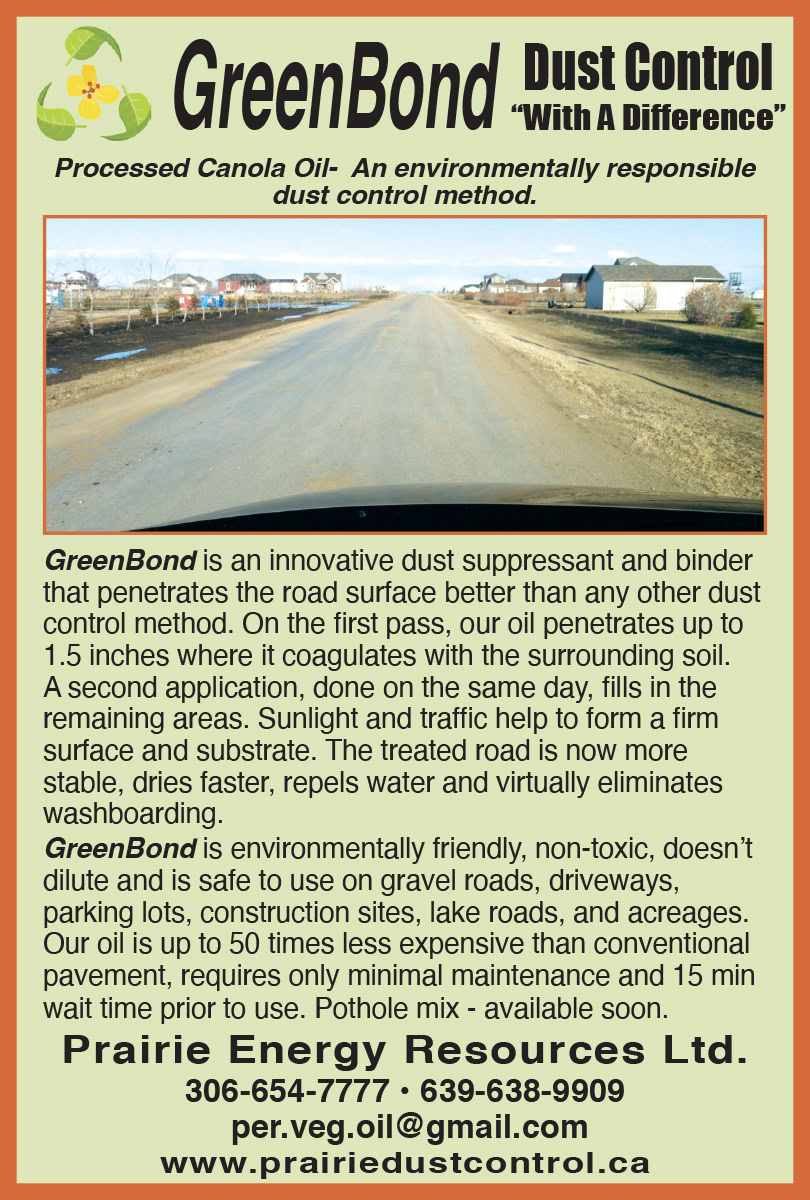 GreenBond is environmentally friendly, non-toxic, doesn’t dilute and is safe to use on gravel roads, driveways, parking lots, construction sites, lake roads, and acreages. Our oil is up to 50 times less expensive than conventional pavement, requires only minimal maintenance and 15 min wait time prior to use. Pothole mix - available soon.